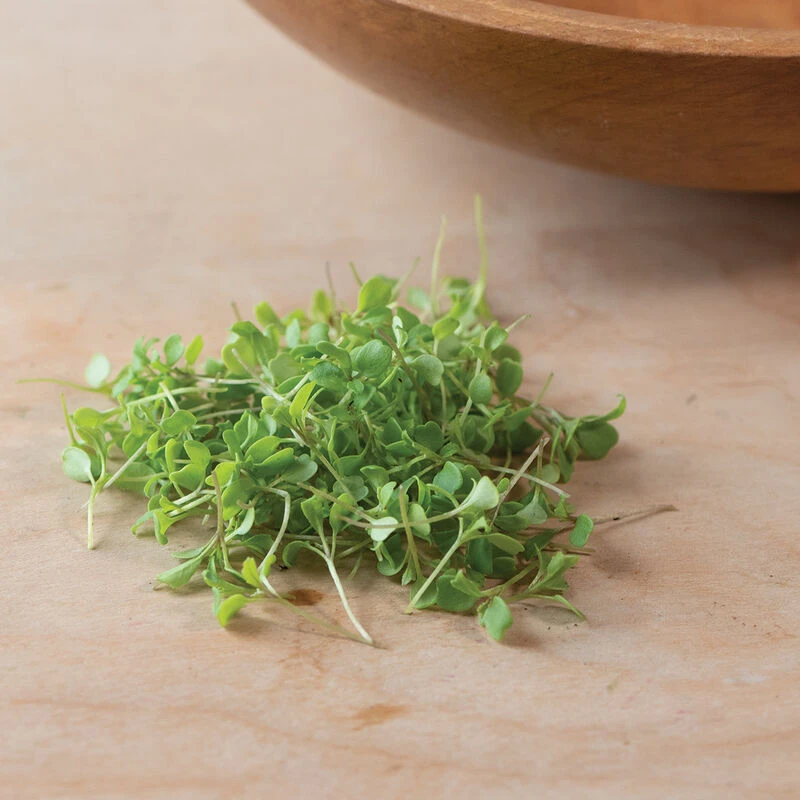 | CULTURE | Grow in a greenhouse or protected area. Follow the germination guidelines for the specific variety being grown. However, you can generally be successful by following the guidelines for brassica family members: grow on potting mix or soilless medium of your choice in shallow trays or 20-row flats. Broadcast seed thickly on the media surface with seeds 1/8- 1/4" apart, press seeds firmly into media for maximum soil contact, and cover lightly with sowing mix, vermiculite, or humidity dome. Microgreens can be germinated on heat mats, in germination chambers, or on greenhouse benches or floors. |