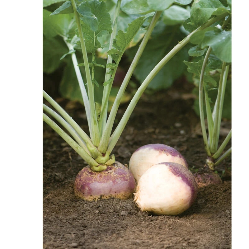 | CULTURE | Rutabagas prefer well-drained soils abundant in potash and phosphorus, with a pH range of 6.4-6.8. For customary fall and winter use, plant in late spring, early summer, or about 90 days before intended harvest. Sow 6 seeds per foot, 3/8" deep, thinning to 6" apart, in rows 18-24" apart. |