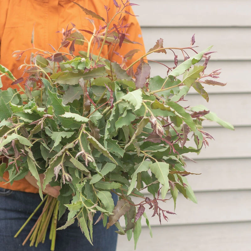 Medium-green, 2–7″, sword-shaped leaves that produce a strong citronella fragrance. Leaf and stem tips turn a lovely red color in late summer/fall. Less durable foliage than standard eucalyptus.