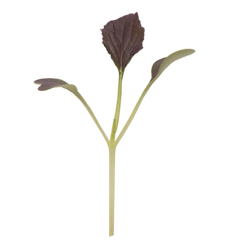 An improvement over Red Rain; darker red true leaves and blushed red cotyledons (first leaves). Based on our yield trial, we recommend seeding 9.5 gm per tray at approx. 3 flats per oz of seed. Avg. days to maturity was 14.5 days when harvested at the first true leaf (as opposed to cotyledon) stage.