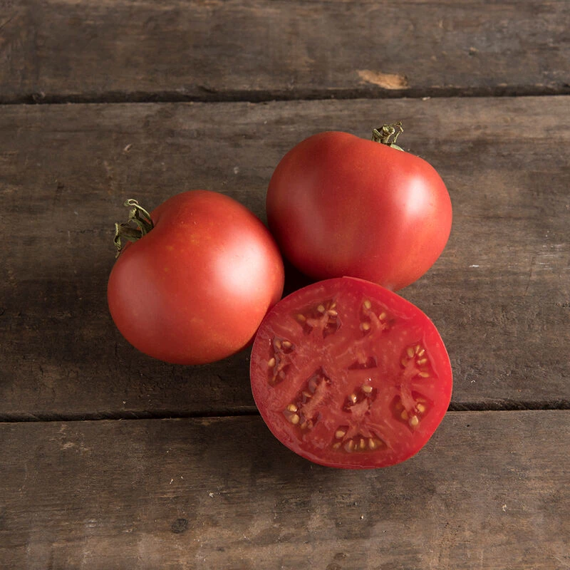 Fruits are early, deep red, and cold tolerant. Rich flavor. Smooth and globe-shaped. 4-6 oz. with a small stem scar. Indeterminate. USDA Certified Organic.