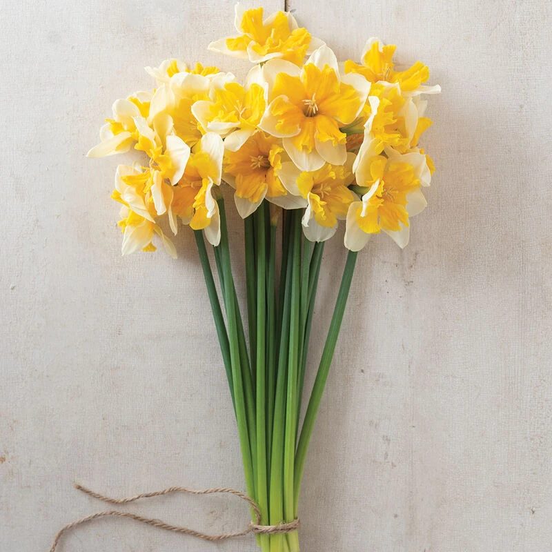 A favorite in our trials. Brilliant tangerine ruffles and ivory petals. The ruffled corona, or cup, is split, giving a layered and upward-facing appearance. Sturdy stems support fragrant, 3–4″ blooms.