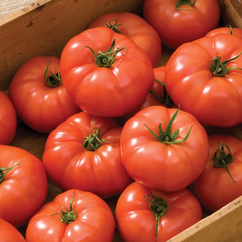 Rebelski combines flavor, texture, presentation, and strong vigor. Bright red, shiny, ribbed fruits avg. 7–8 oz., are very crack resistant, and firm enough to withstand some handling. Developed for the French market, which appreciates lightly ruffled tomatoes, and sold as ‘Rebelski’ in Europe. Rebelski’s comprehensive greenhouse-specific disease package has proved its value in our high tunnel trials, where powdery mildew has recently become a major problem. Also known as DRW 7749. Indeterminate.