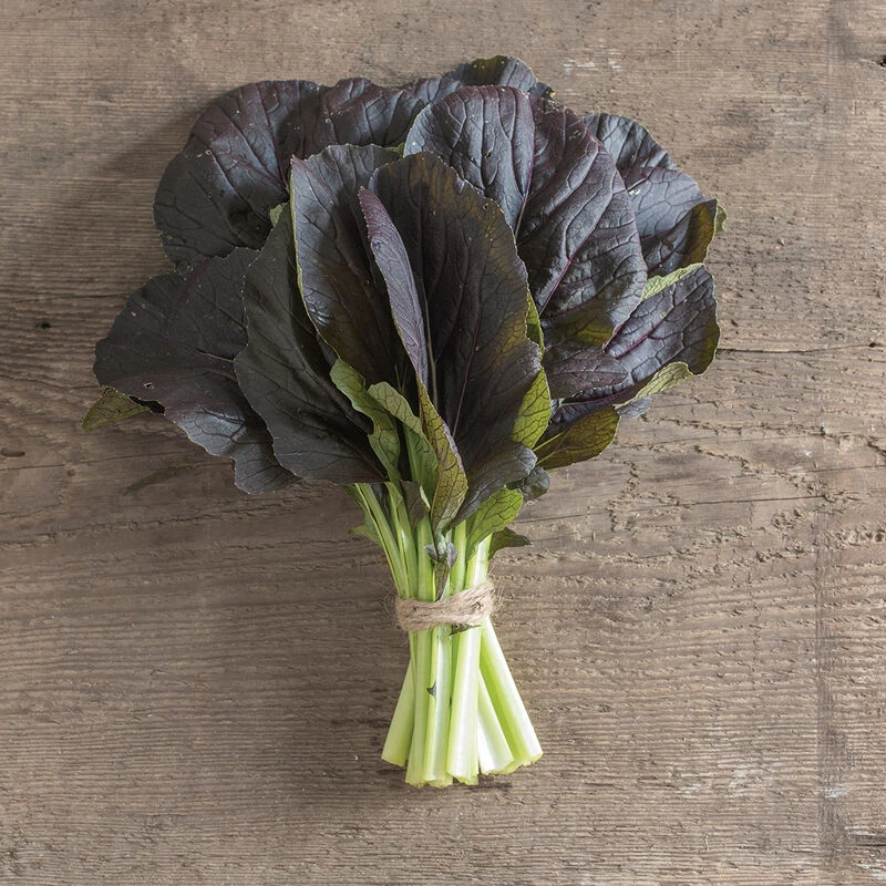 Gently scalloped margin on a broad, deeply colored leaf. Mild flavor. Underside of leaf is light green with striking, dark purple veining. AAS winner.