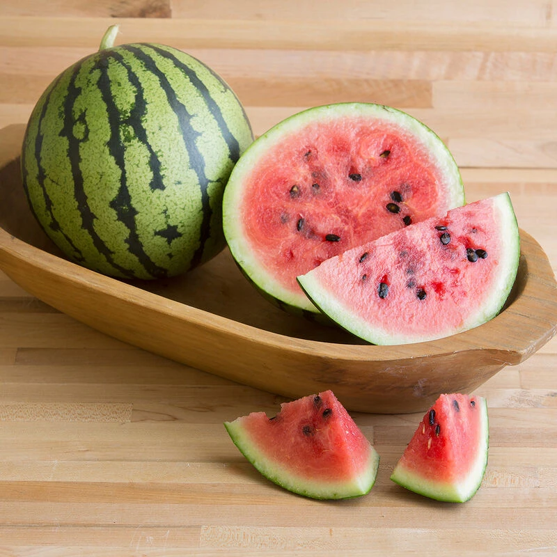 Exclusive! Round “icebox” watermelon with sweet red flesh.