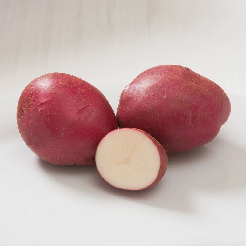 High yields of large, round-to-oblong tubers with midseason maturity. Strawberry Paw’s flesh has a smooth texture with excellent flavor. Great storage potential. Organic tubers are also available.