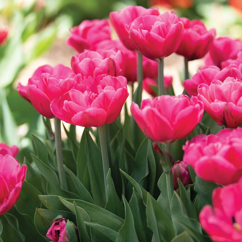 Double blooms. Stems are more compact at 12–18″ but are very sturdy and have a pleasant, dark purple hue. Open blooms are typically 2 1/2–3 1/2″ wide and 1 1/2–2″ tall. Attractive, unopened buds are rose colored with green and purple flames on outer petals. NOTE: Bulbs do not come pre-chilled; if growing in hardiness Zones 8–10, see growing information (below) for pre-chilling instructions.