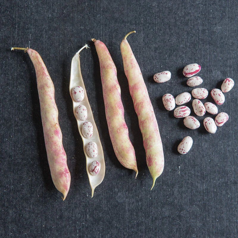The fresh shell beans are large and round. The 6-7″ stringless pods can be eaten and marketed young as snap beans. These Italian beans retain their flavor whether fresh, frozen, or canned. Original stock seeds collected at the southern tip of South America, in Tierra del Fuego. Also of superior quality as a dry bean.
