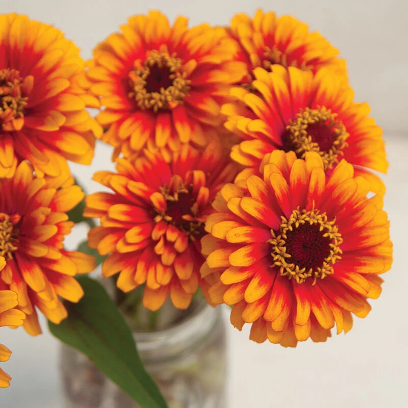 2–3 1/2″ semidouble flowers have iridescent magenta centers and petals dipped in orange. Cut-and-come-again flower, yielding multiple cuts over the season. This magnificent zinnia is an AAS winner.